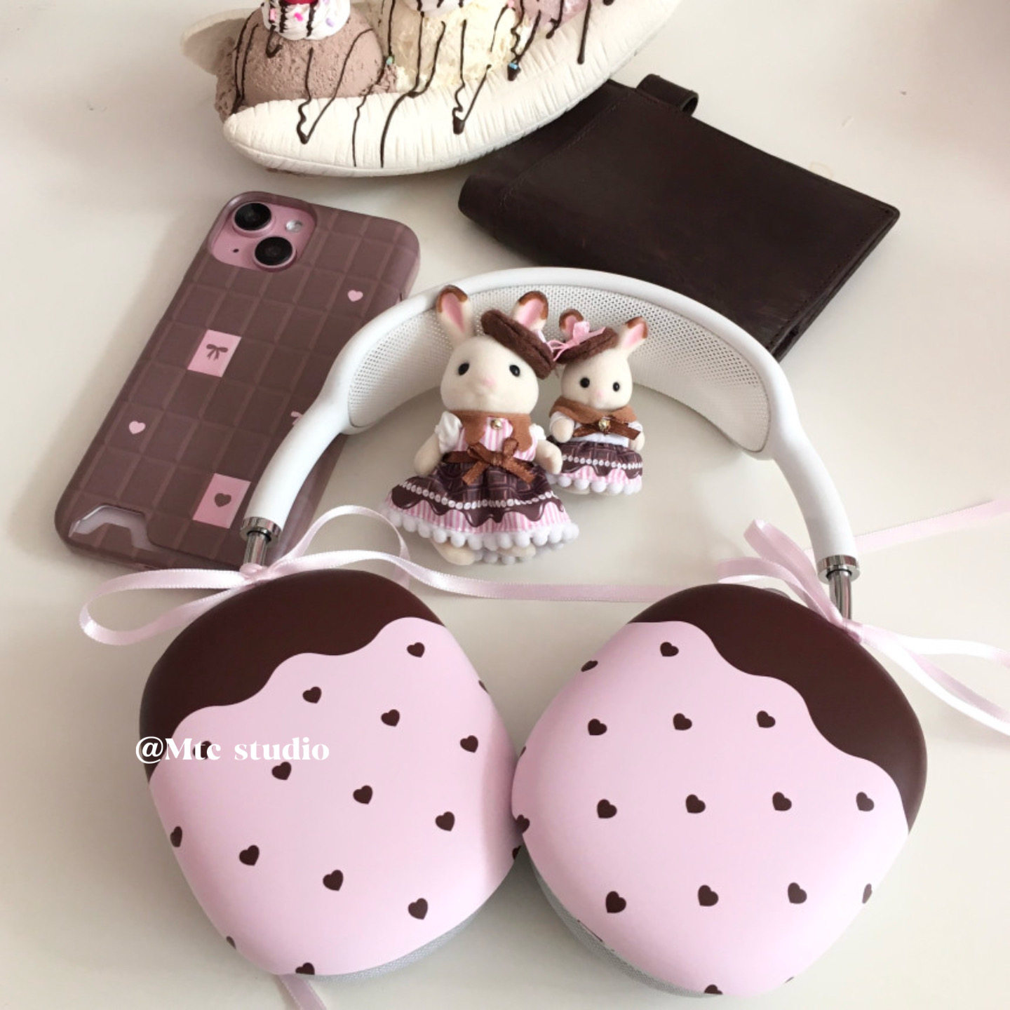 max横头梁保护套苹果头戴蓝牙耳机保护壳 韩系ins小众设计可爱甜美巧克力草莓韩系ins风少女心适用airpods由