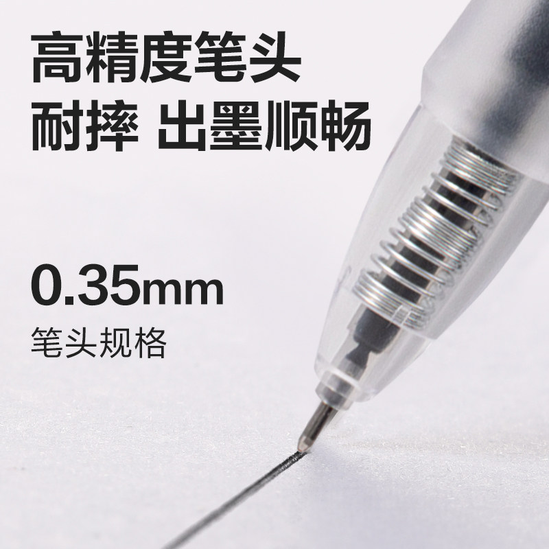 得力超细0.35mm财务笔按动中性笔全针管速干黑色办公黑色水笔细头由