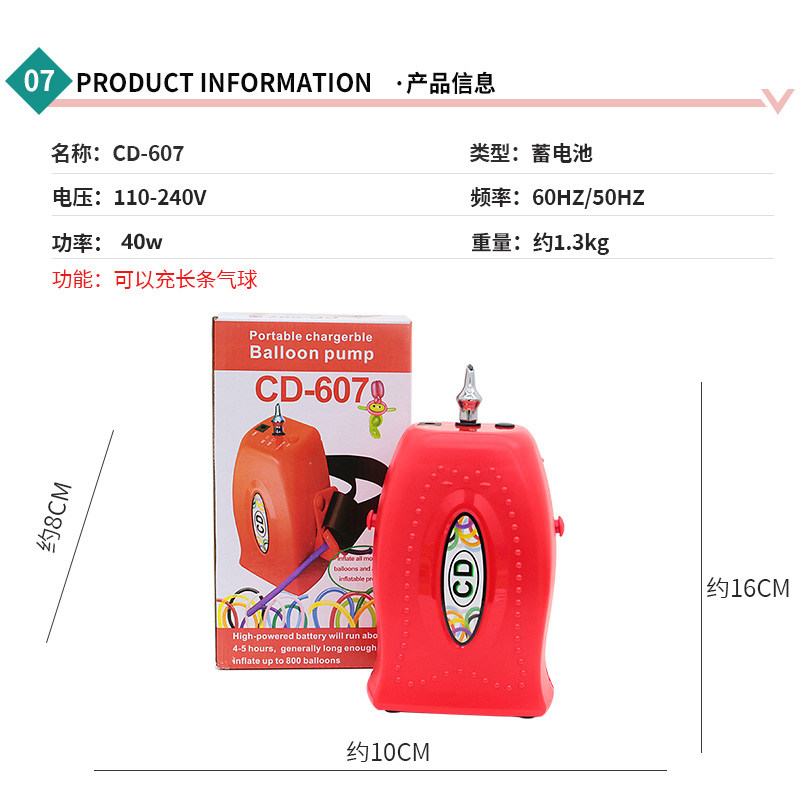 为您提供商品充电魔术气球电动充气机CD 606气球打气筒 607长条打气机便携式的详细介绍,