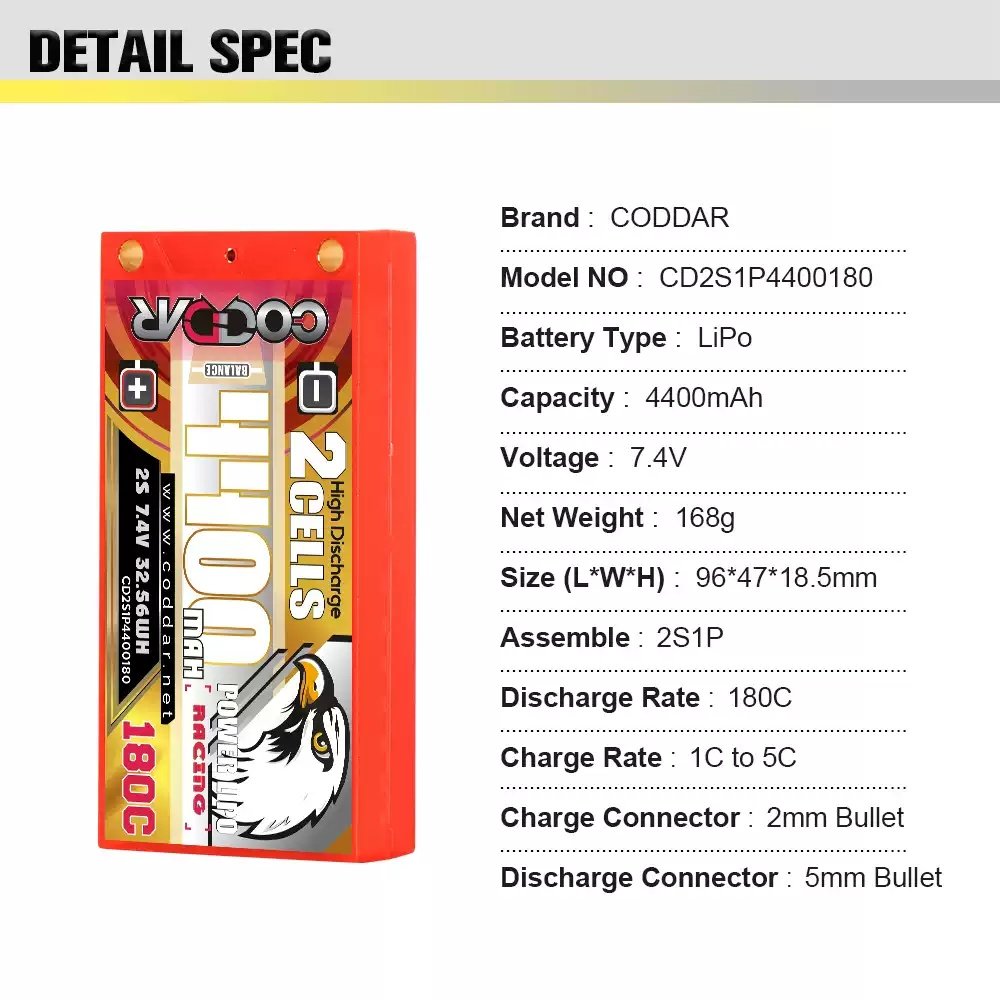 为您提供商品鹰氪CODDAR 12电动漂移车RC薄锂电池 180C 7.4V 4400mAh 2S车电的详细介绍,
