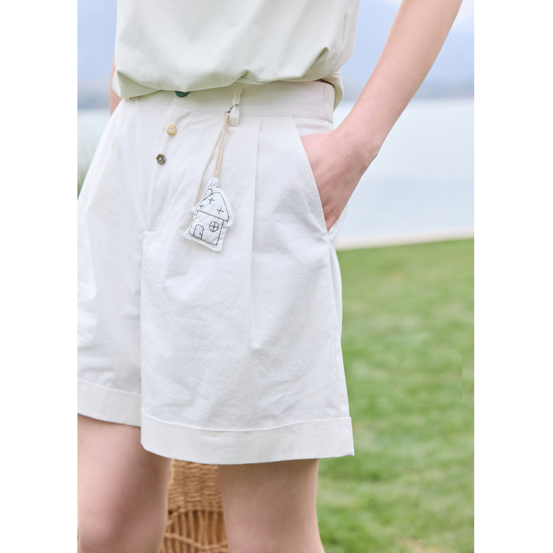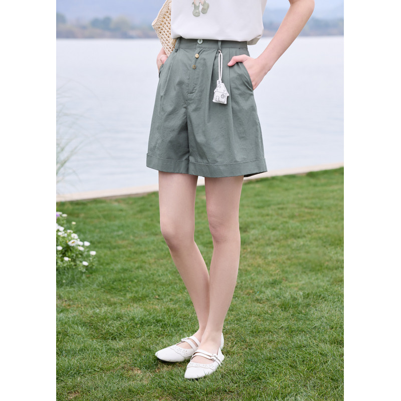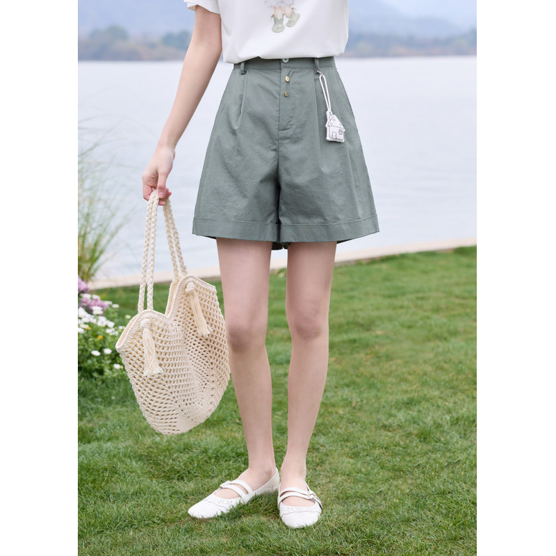 紫涵阔腿休闲三分短裤 新款 日系简约宽松高腰显瘦直筒裤 子 女士夏季