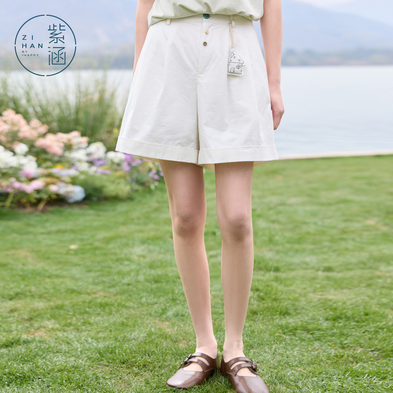 为您提供商品紫涵阔腿休闲三分短裤 新款 日系简约宽松高腰显瘦直筒裤 子 女士夏季的详细介绍,