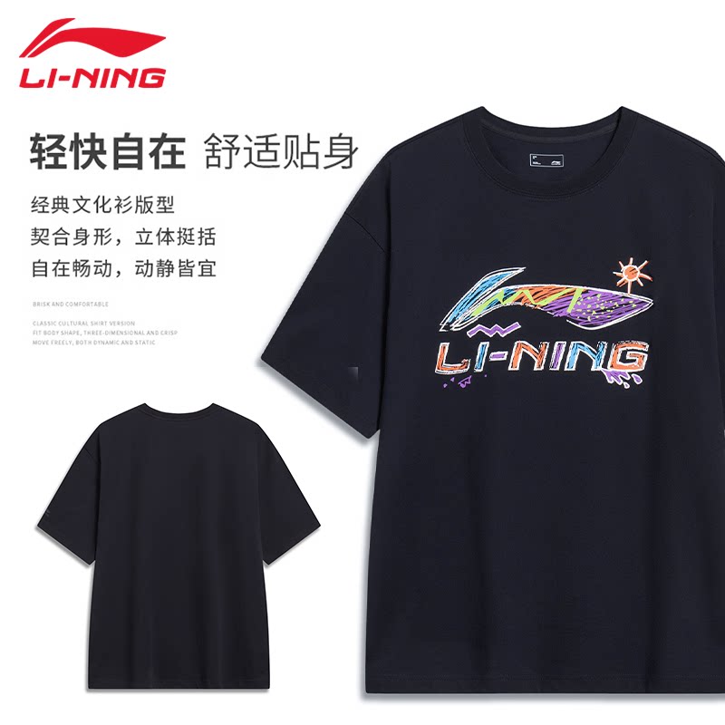 为您提供商品夏款 宽松圆领百搭潮流印花运动休闲上衣AHSU745 T恤亲子装 李宁短袖的详细介绍,