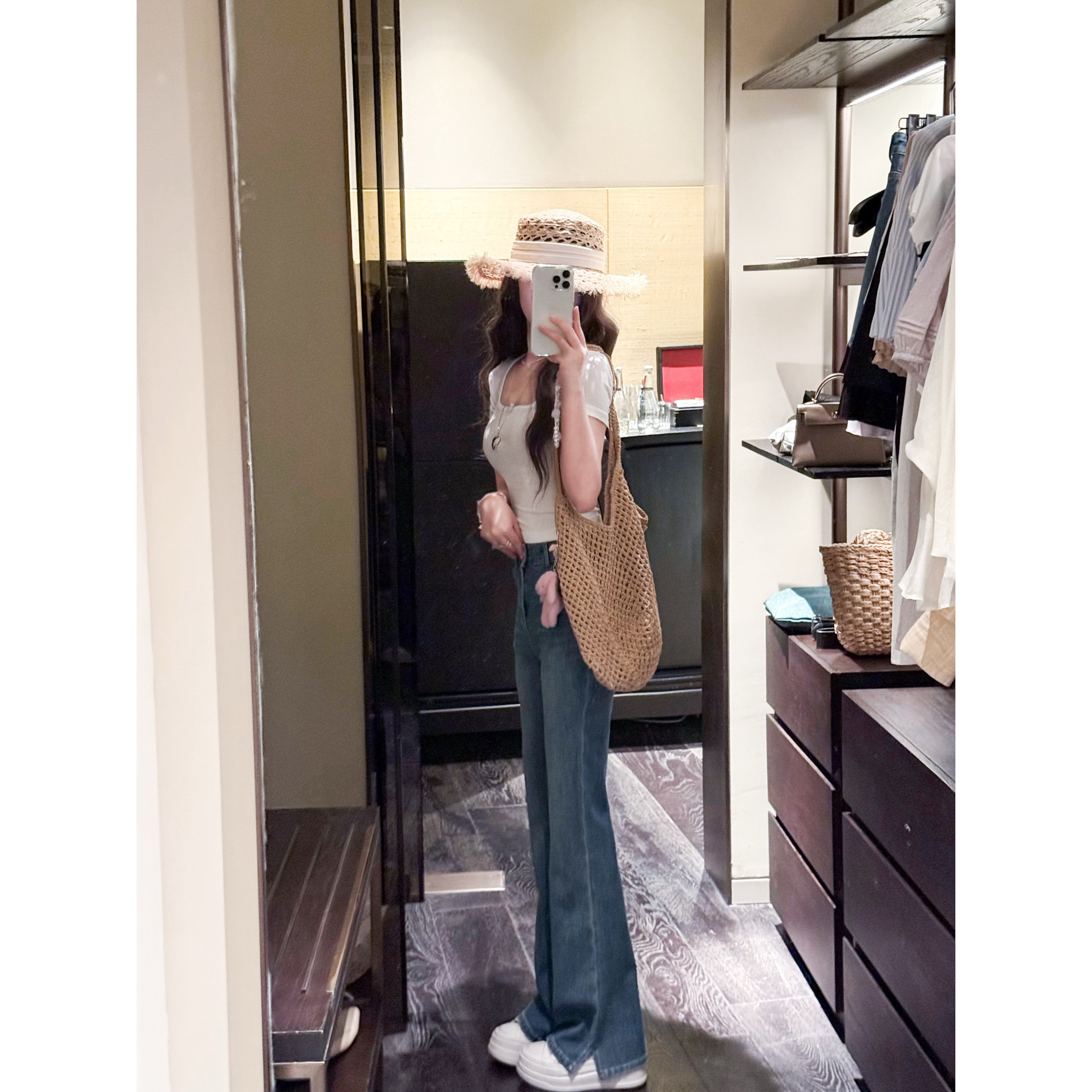 YIKOwow 棉质高弹开叉微喇牛仔裤 女显腿细直长裤 中古辣妹升级版