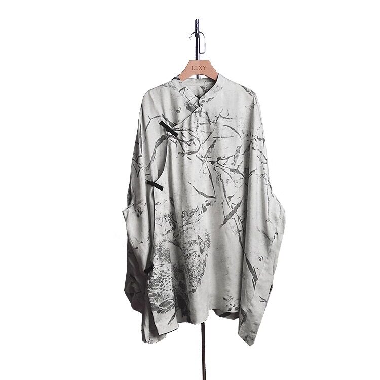 时髦精腔调小众复古设计新中式 斜襟手工盘扣廓形随性上衣衬衫