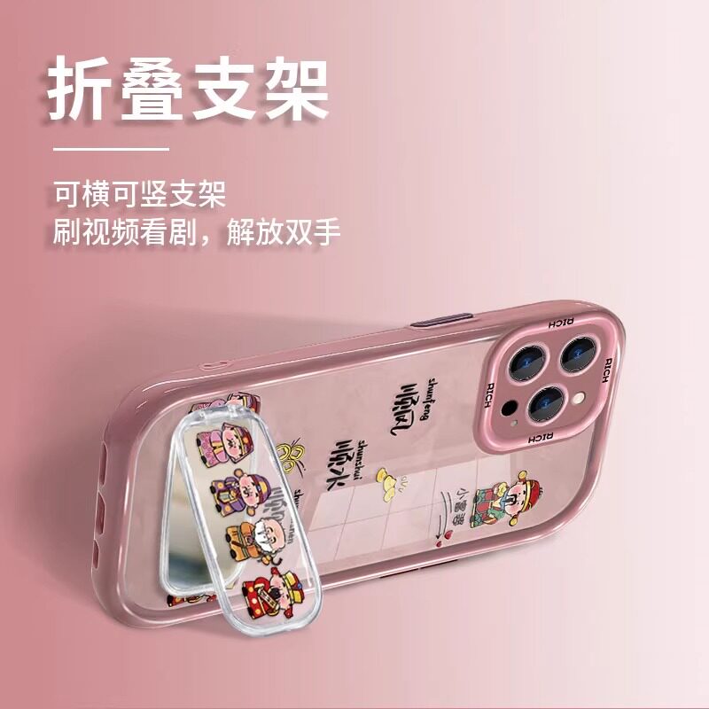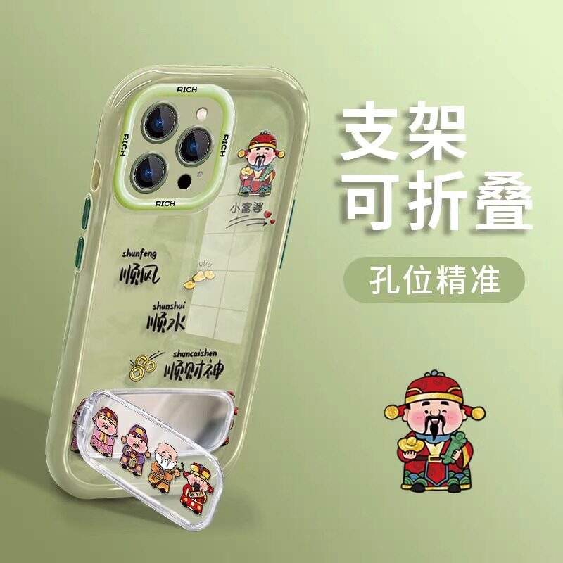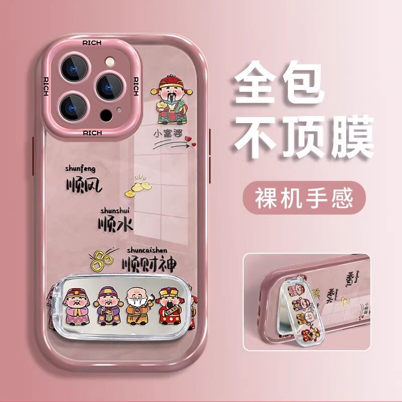 适用苹果16Pro手机壳iPhone14max小米15华为mate70pura80k60nova13vivox200reno12荣耀100 顺财神镜子支架新款由