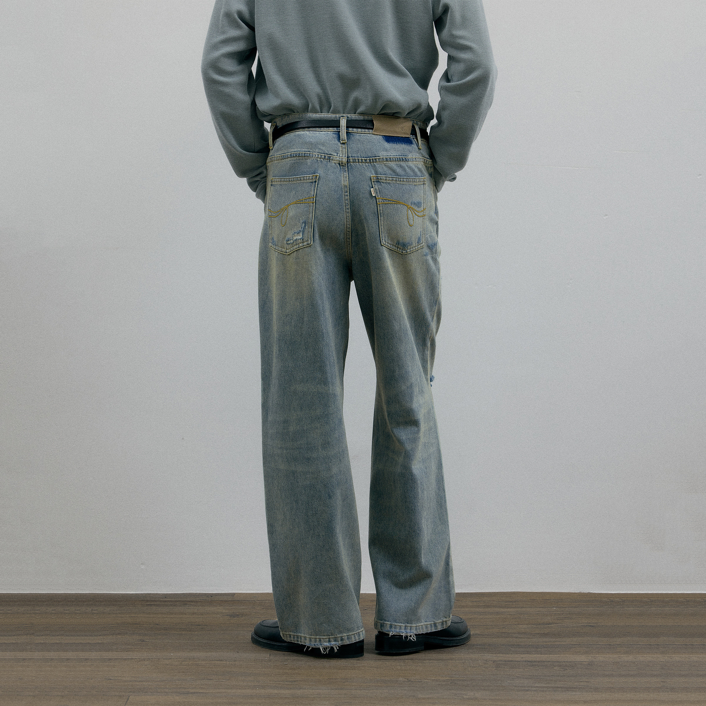 EchoForge原牛13盎司百搭微喇牛仔裤 刺绣马毛皮牌 通勤神裤