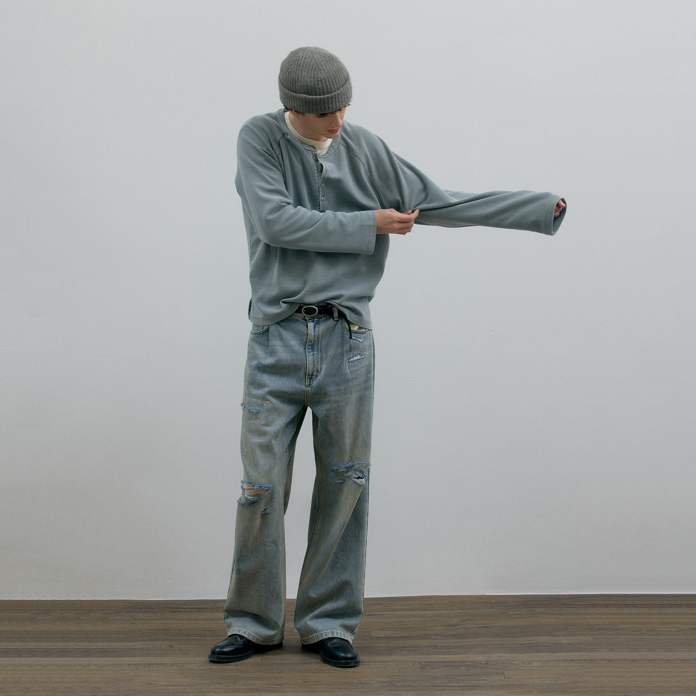 Mar C2H4 Del 艾尼斯·戴尔 微破坏粉笔牛仔裤 Jeans Ennis Denim