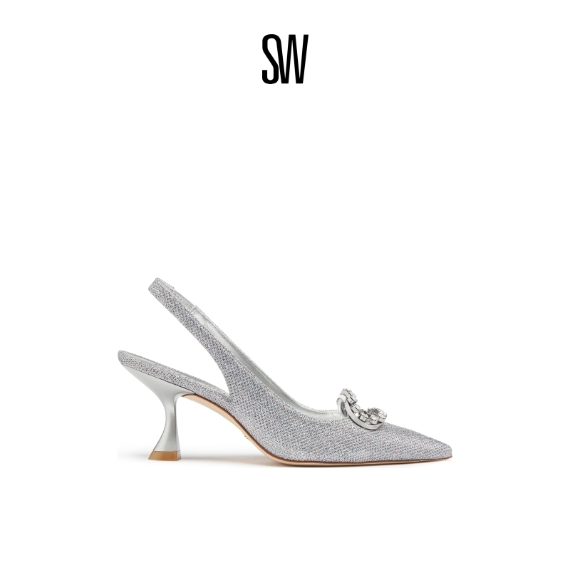 BLINGRING XCURVE 水晶扣尖头露跟高跟鞋
