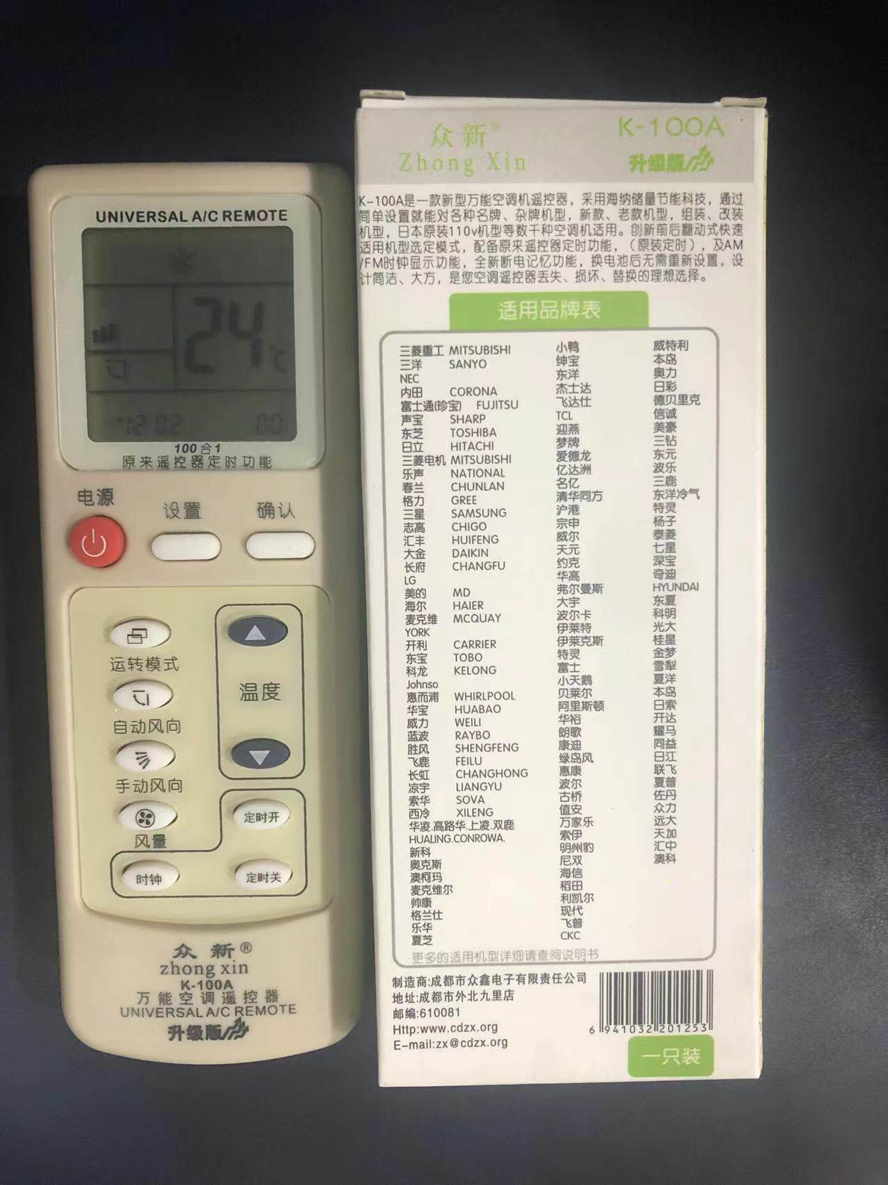 老款 空调机开利威力约克汇丰遥控 100A大屏升级版 众鑫空调遥控器K由