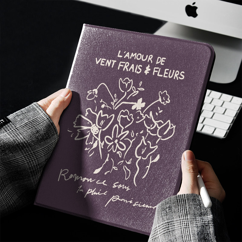 10.2平板air5壳mini6全包防摔12.9寸10.5适用于ipadpro11寸保护壳 文艺线条花朵插画ipad保护套2022带笔槽款