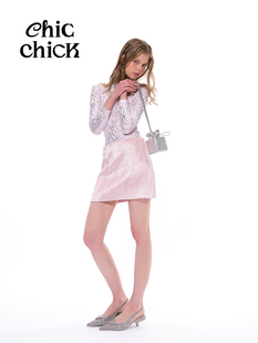 ChicChick时髦小鸡vol16浅粉色高级光泽立体压褶低腰半身迷你短裙由