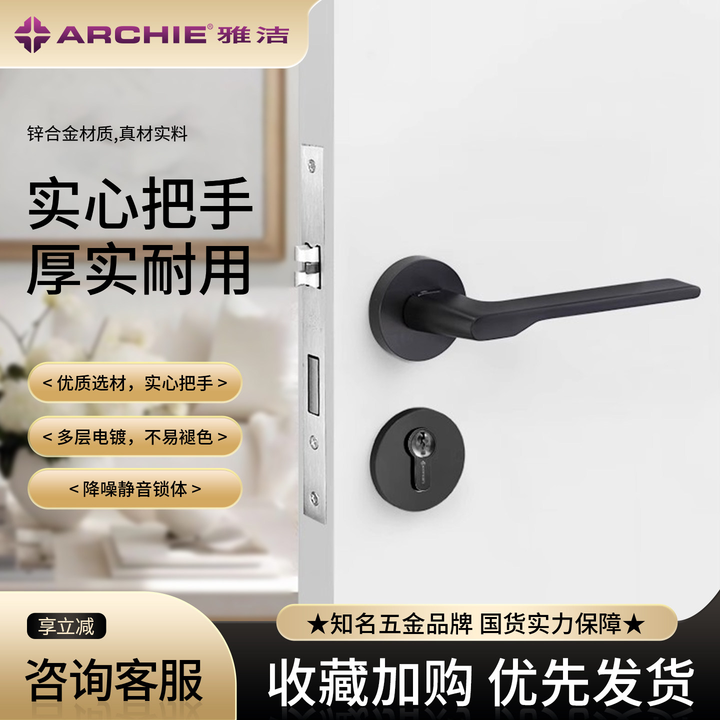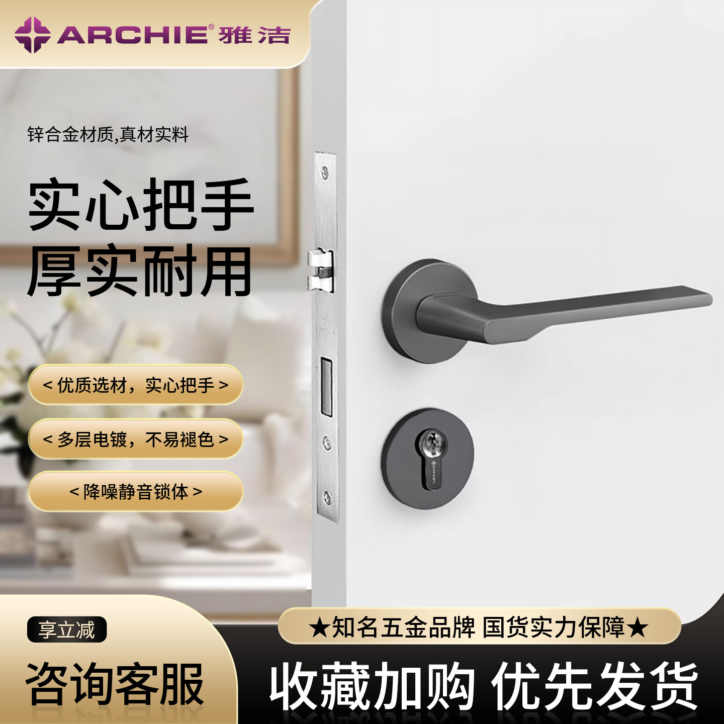 雅洁静音卧室房门锁卫生间木门锁家用通用型房门锁把手锌合金8340由