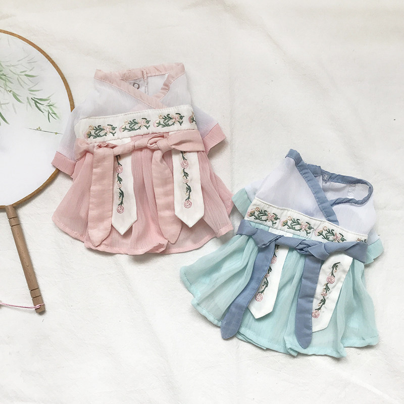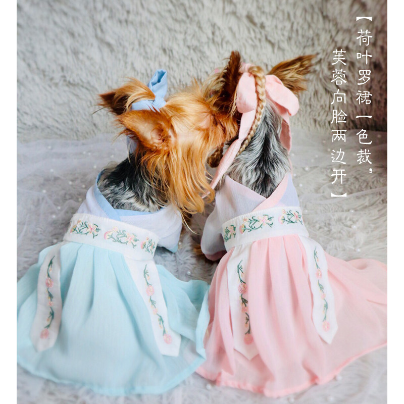 宠物汉服 薄款 仙女古风连衣裙猫咪古装 泰迪拍照 狗狗猫猫衣服夏季