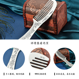 为您提供商品S999纯银梳子飞燕长柄手工錾刻做旧复古足银刘海发梳母亲节送妈妈的详细介绍,