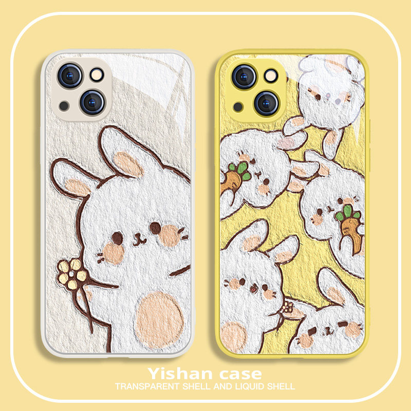 15pro柠檬黄14手机壳iPhone13高级感12mini油画风11小兔子8plus 7p可爱xsmax液态玻璃xr保 适用苹果17系列由