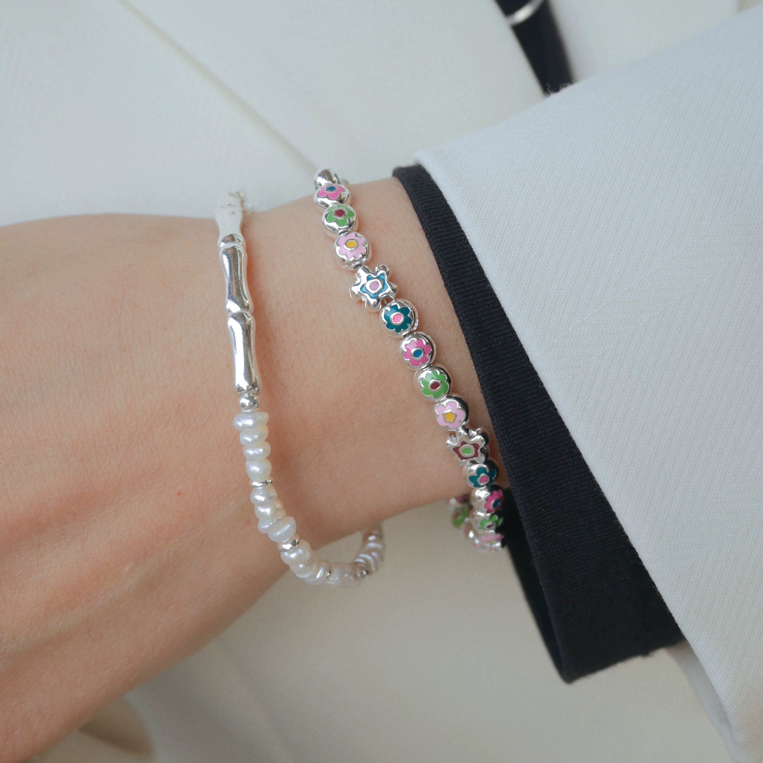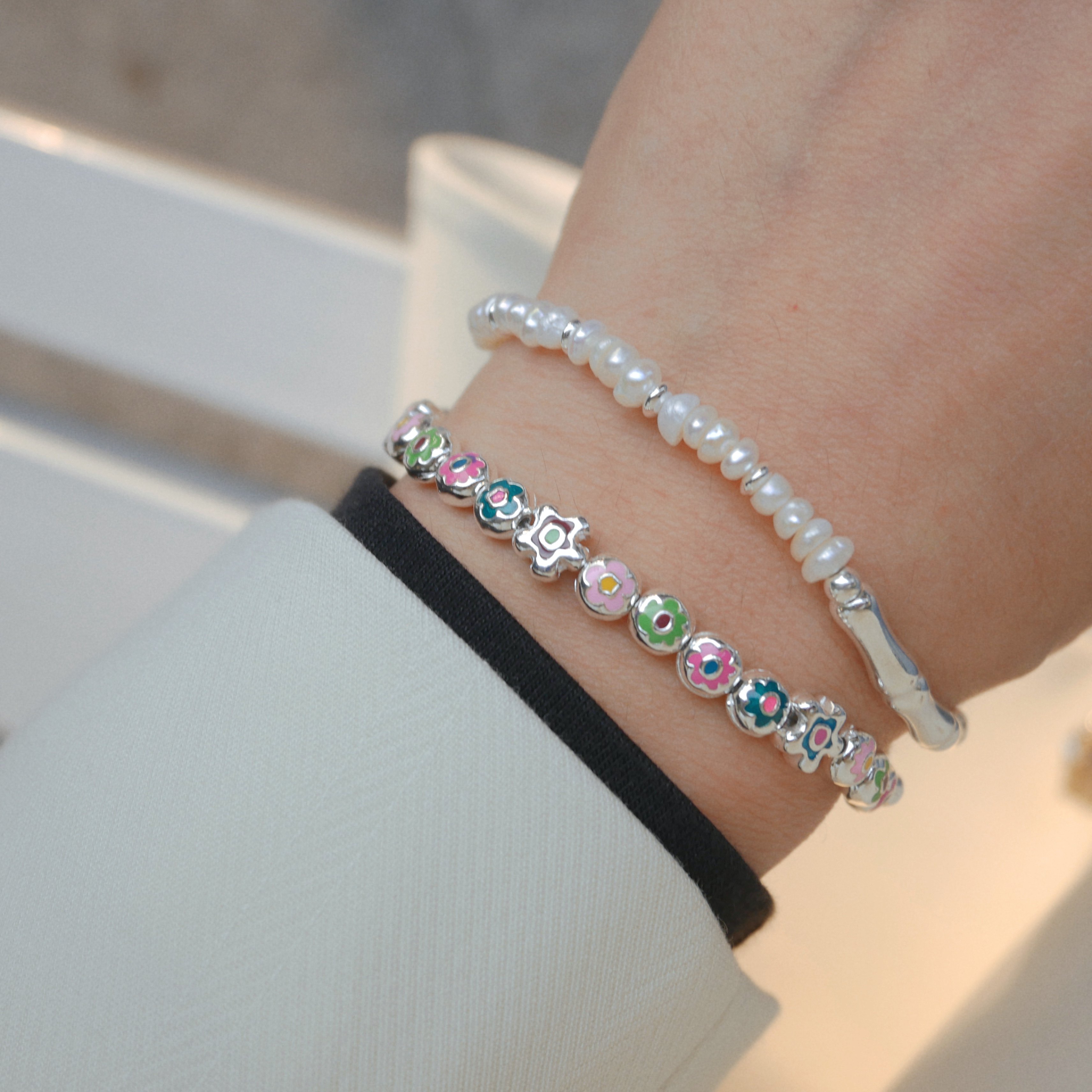 通体925银珐琅工艺不掉色森系简约气质手链 T.W奶油花多巴胺新款