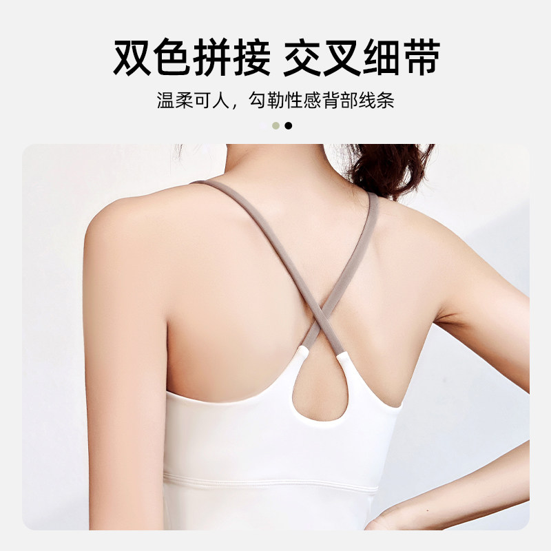 蜜桃拼色吊带运动内衣女夏高强度防震防下垂跑步健身瑜伽文胸套装由