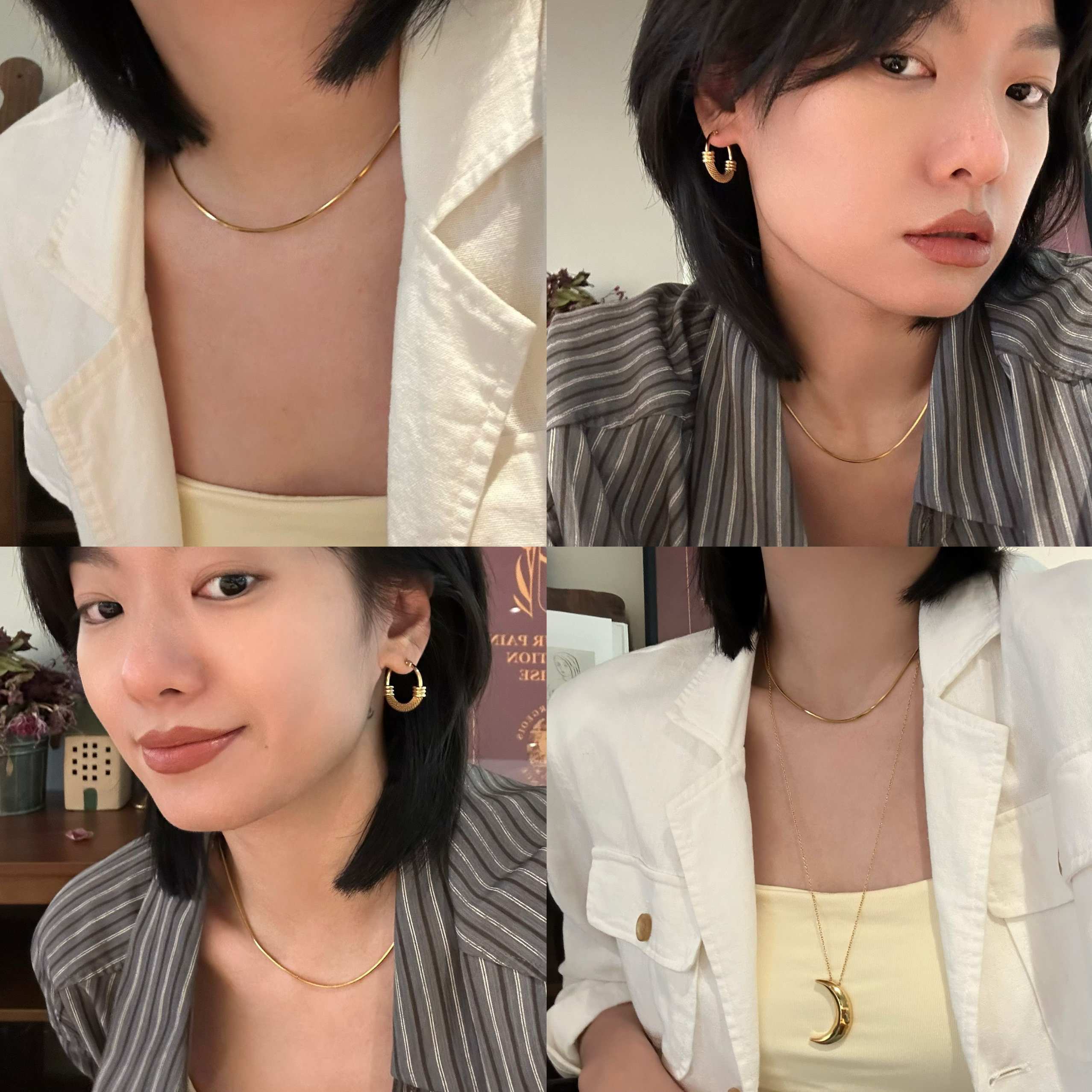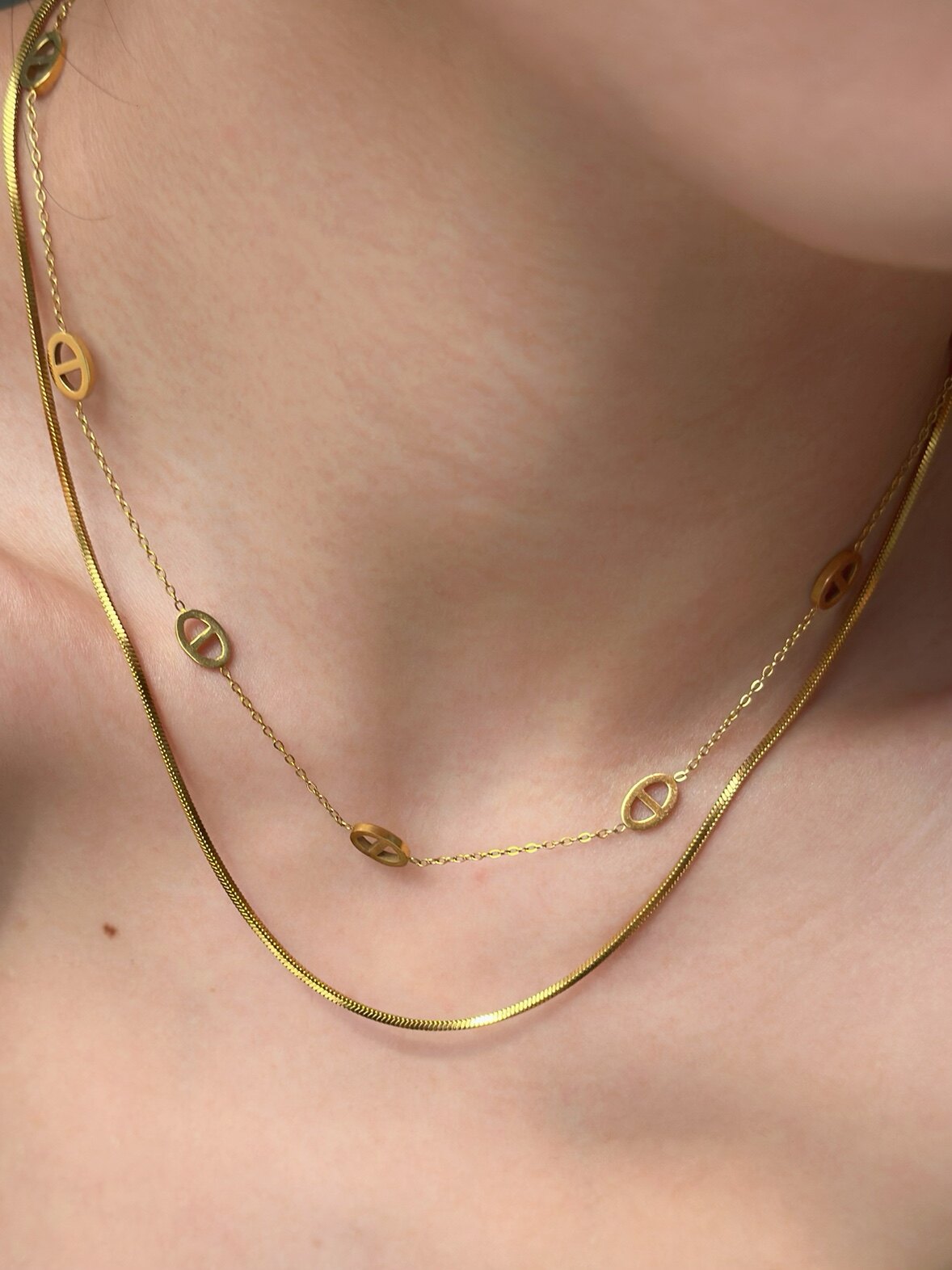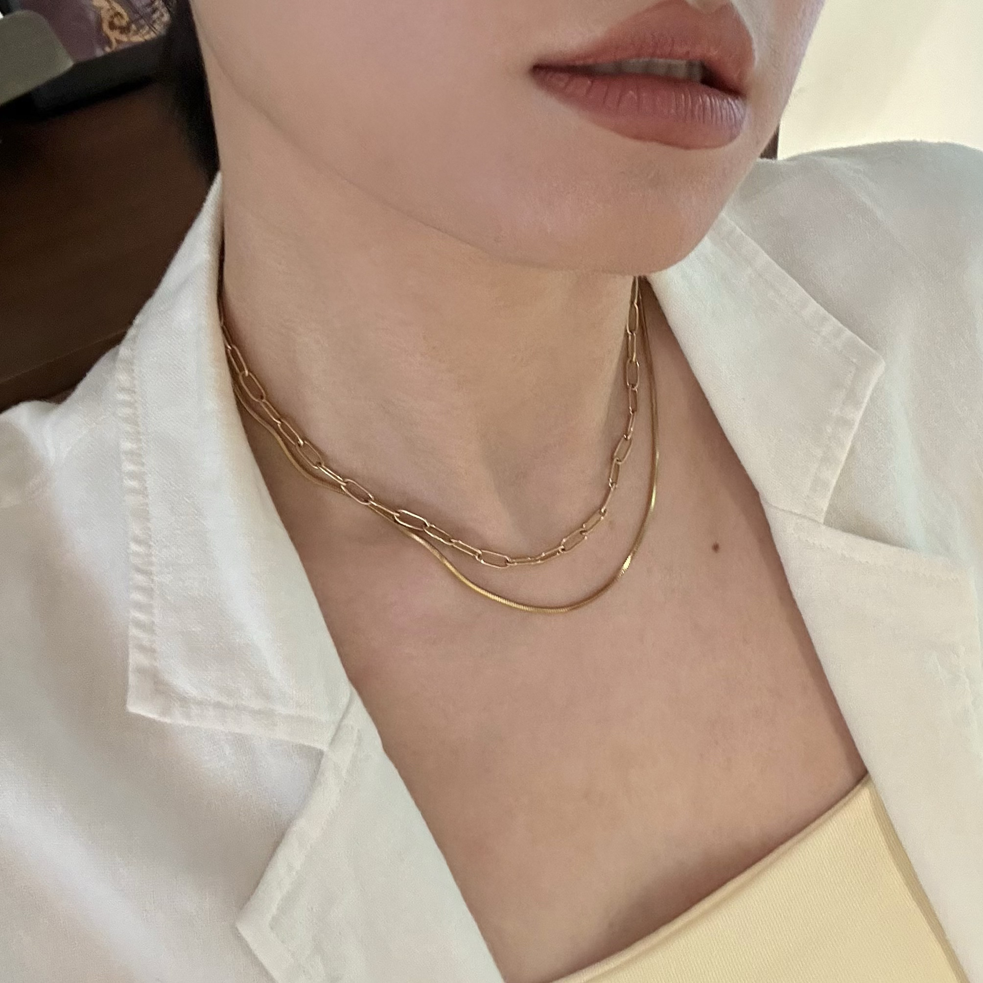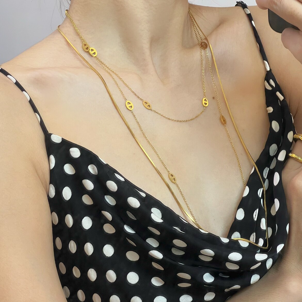 多种戴法新 猪鼻子钛钢不掉色方形蛇骨长项链简约毛衣链白百合同款
