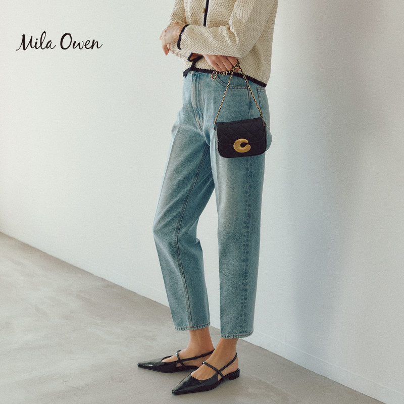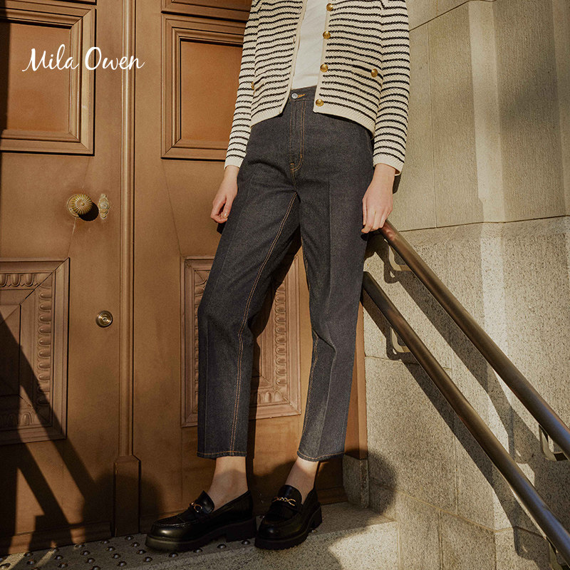 Mila 09WFP231038 Owen春夏休闲百搭高腰中线设计锥形水洗牛仔裤由
