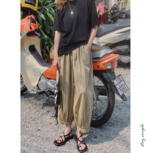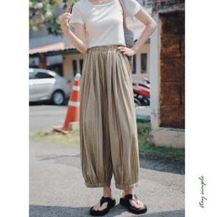 夏休闲裤 女2026新款 花吉K230绿色日系慵懒休闲竖条纹气球灯笼裤