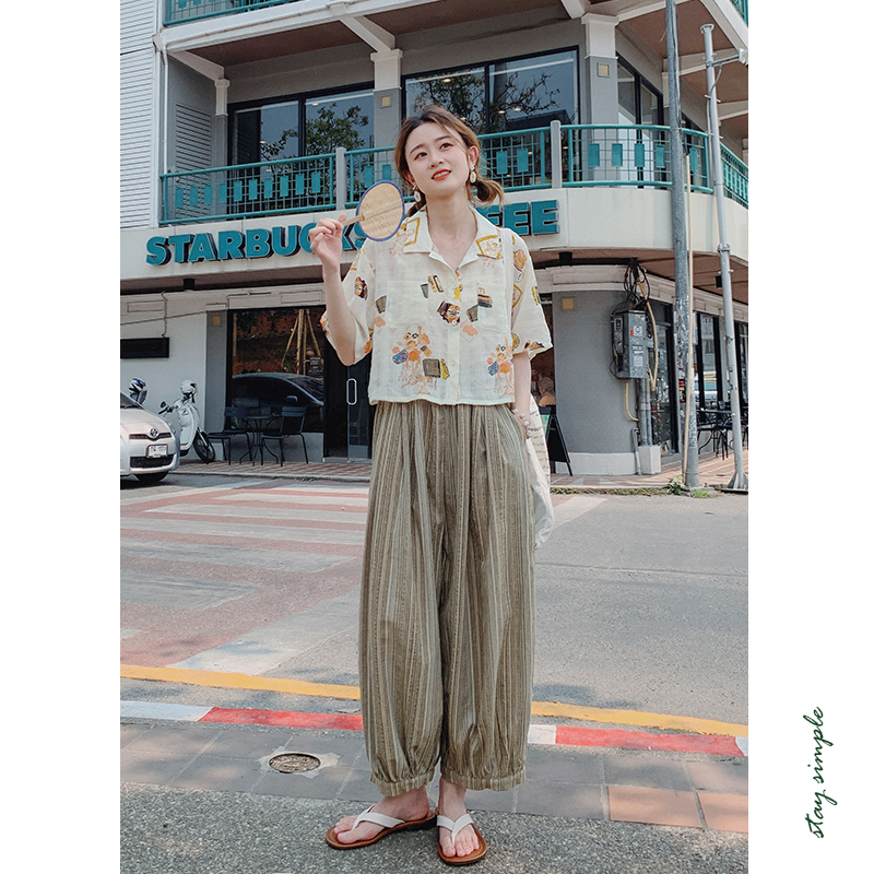 为您提供商品夏休闲裤 女2026新款 花吉K230绿色日系慵懒休闲竖条纹气球灯笼裤的详细介绍,