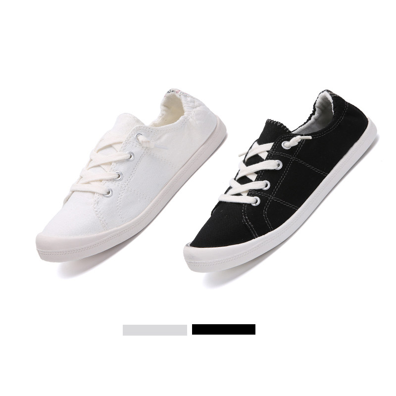 女平底学生运动休闲小白鞋 欧美出口练车学车一脚蹬帆布鞋 2024春季
