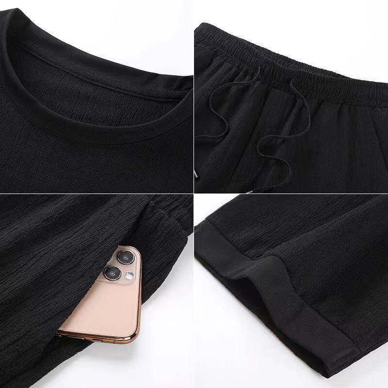短裤 冰丝休闲运动速干套装 男夏季 短袖 潮流一套搭配衣服 两件套薄款