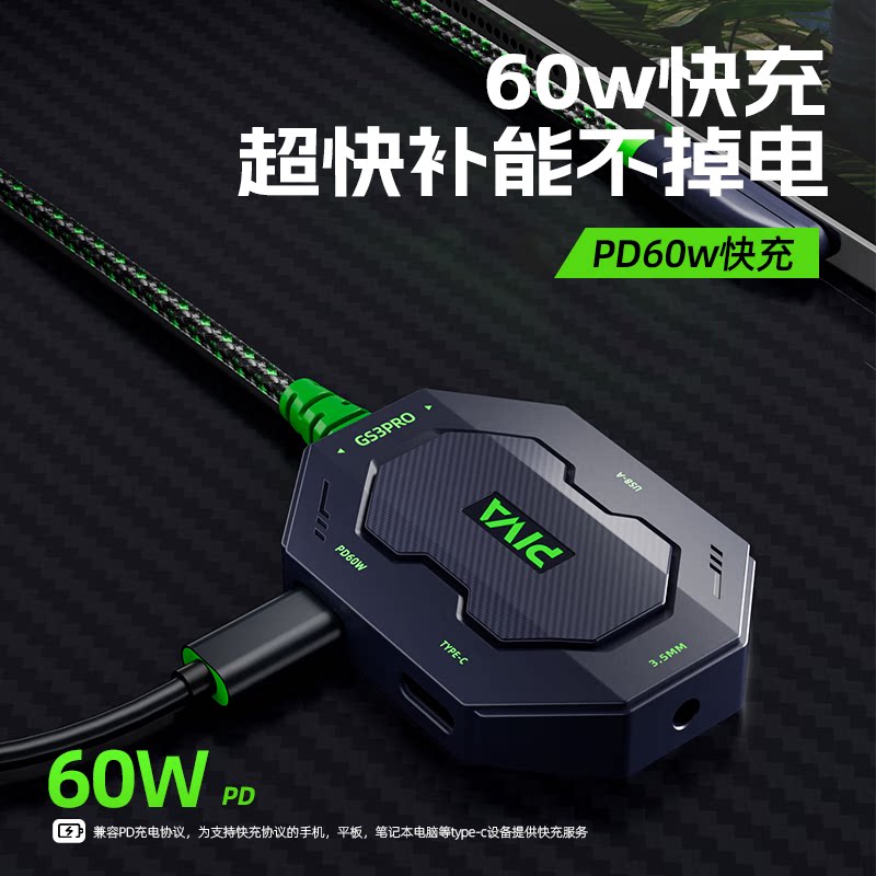 Piva派威GS3pro平板转接器typec转接口4合1转换器3.5mm耳机60W快充吃鸡游戏适用苹果17手机ipadpro小米平板头由