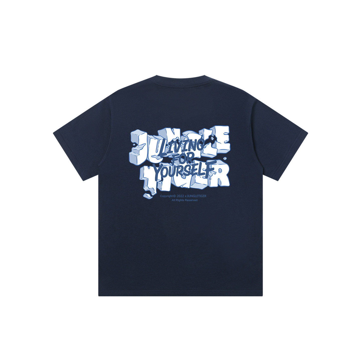 丛林老虎美式 t恤男街头涂鸦大码 黑色圆领纯棉半袖 潮 字母印花短袖