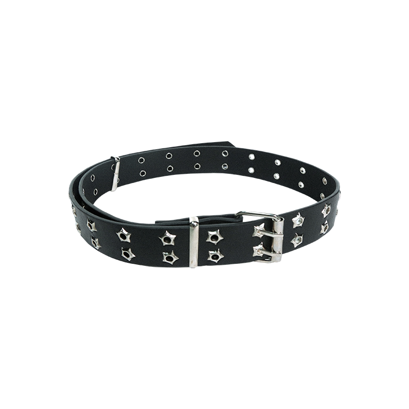 复古朋克风暗黑小众街头潮流双圆孔黑色皮质腰带男女情侣ins 经典