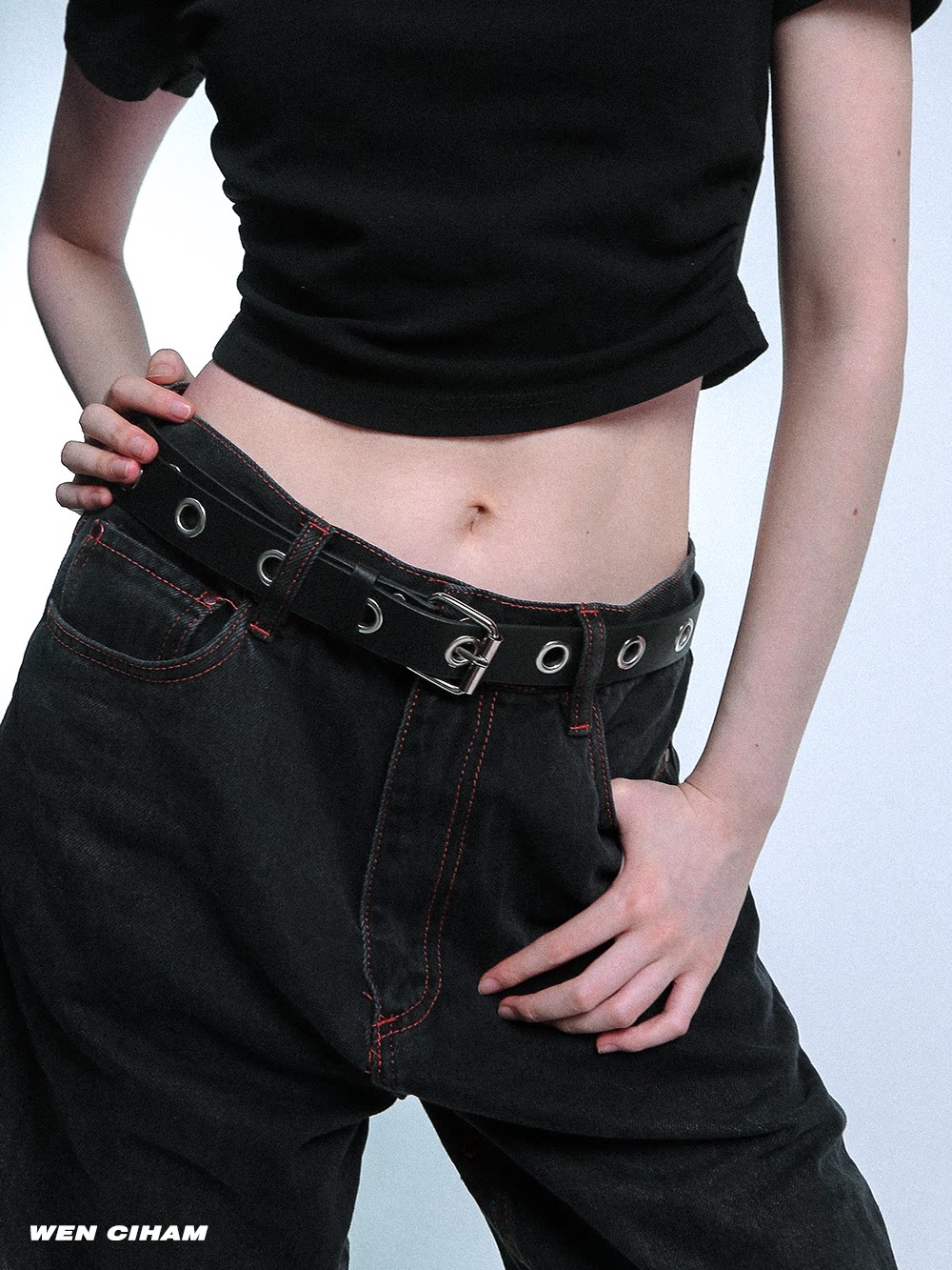 饰配牛仔裤 带红色 装 丝巾腰带配饰女丝带腰链皮带嘻哈朋克复古美式