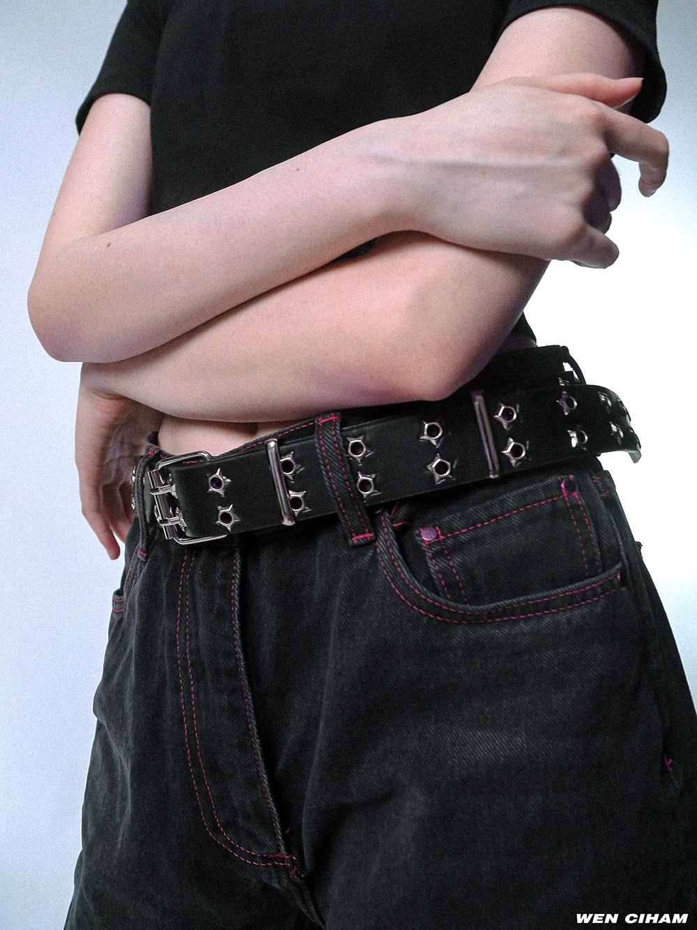 复古朋克风暗黑小众街头潮流双圆孔黑色皮质腰带男女情侣ins 经典由
