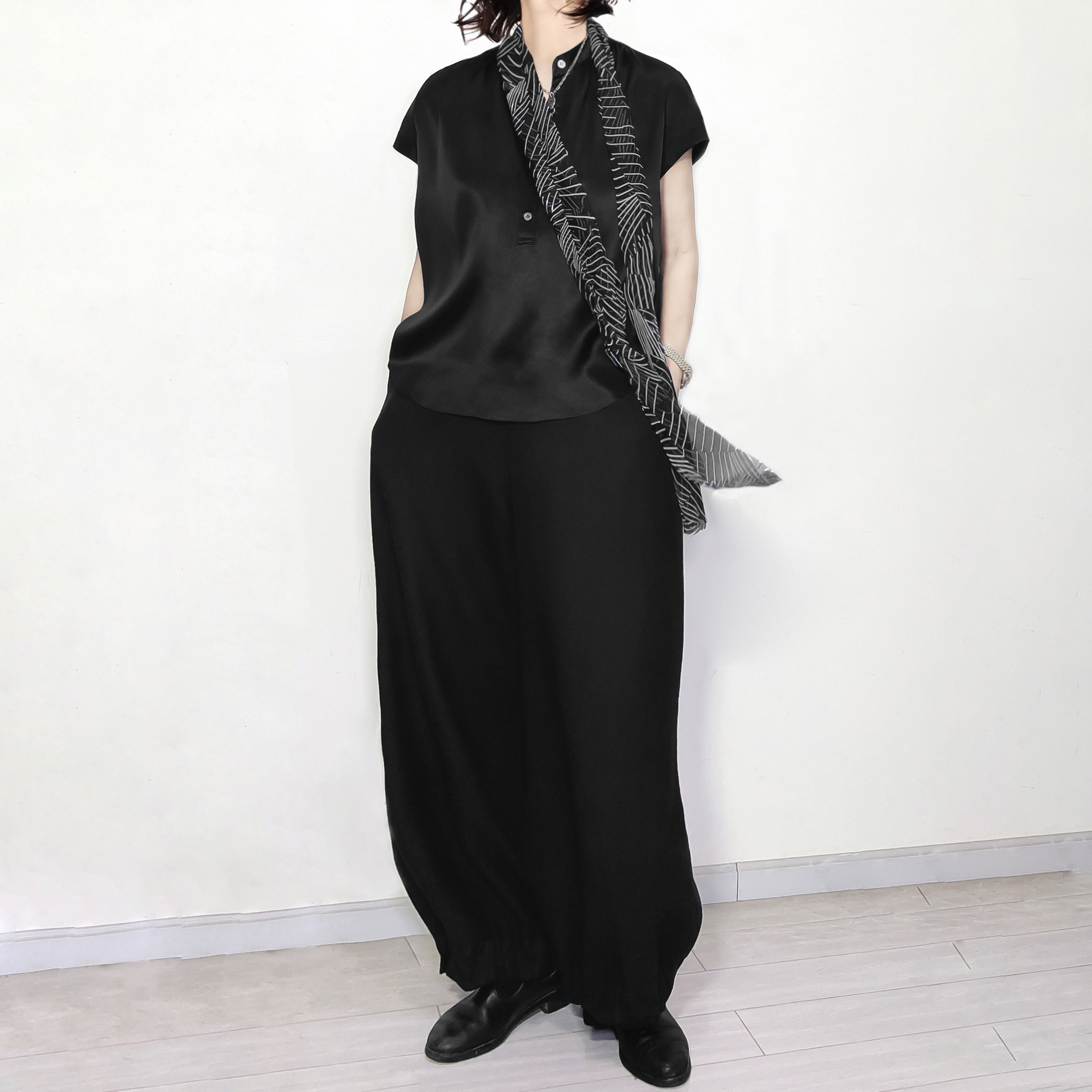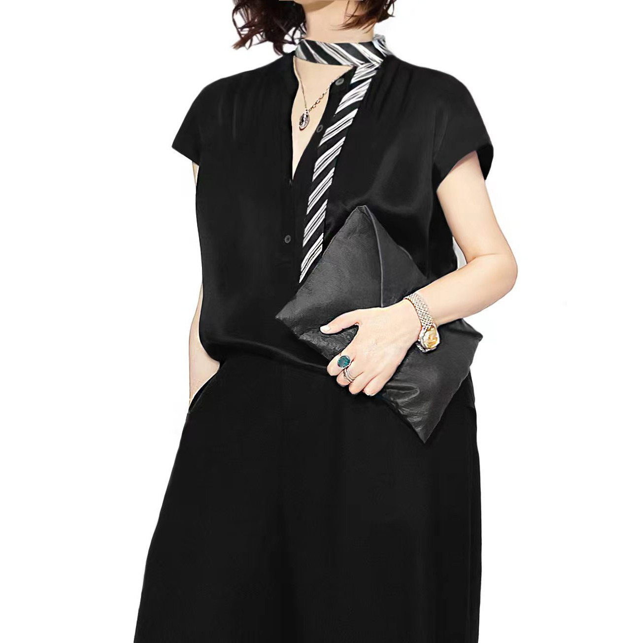 为您提供商品黑色衬衣女2026春夏新款 袖 陈小满原创设计桑蚕丝真丝立领宽松法式的详细介绍,