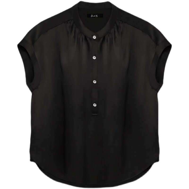 黑色衬衣女2026春夏新款 袖 陈小满原创设计桑蚕丝真丝立领宽松法式