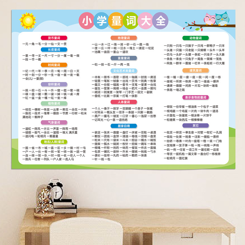 小学 语文英语基础知识墙贴 生学习挂图全套叠词量词大全数学公式由