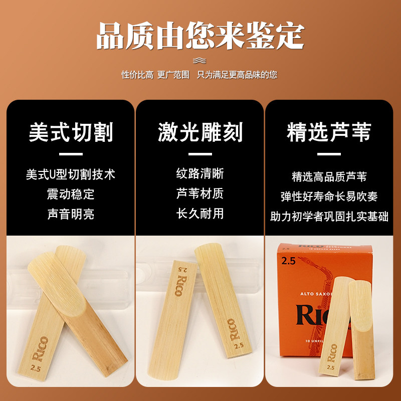 为您提供商品美国RICO瑞口中音萨克斯哨片降E调橙盒黄盒2.5号进口3号古典流行的详细介绍,