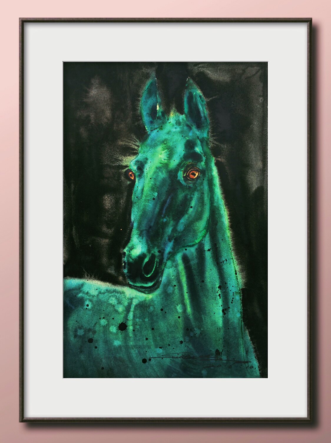 孙继成原创水彩版 绿马 客厅卧室玄关装 饰画 画由