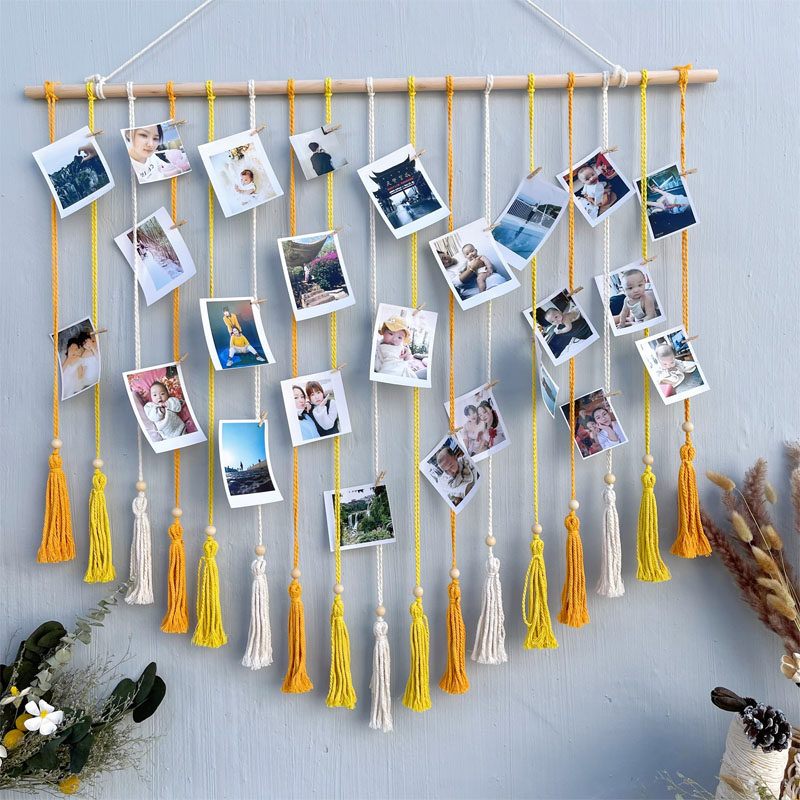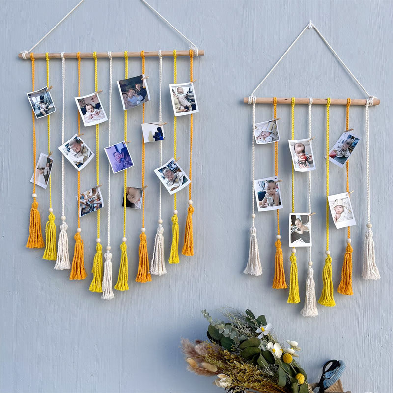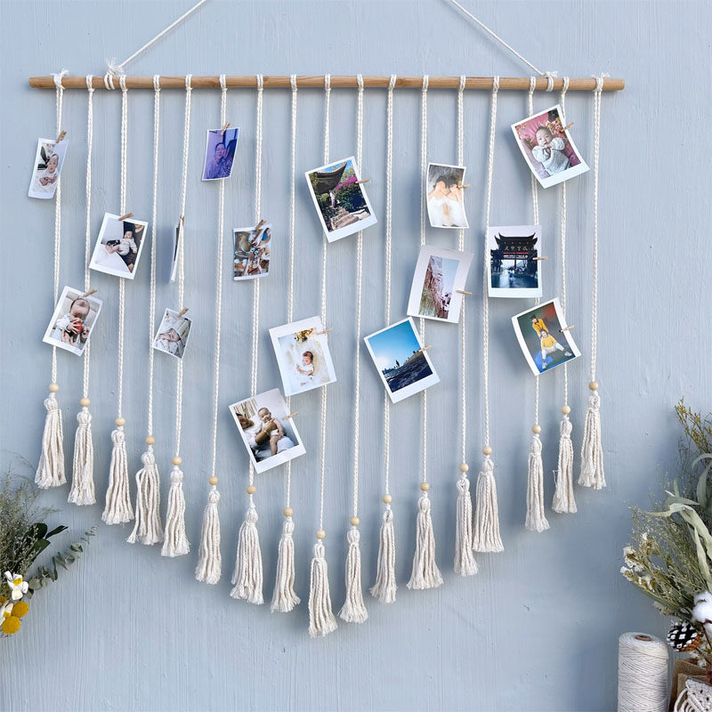 ins风网红创意个性 饰 照片墙挂毯彩色棉麻绳手工diy客厅相片墙装由