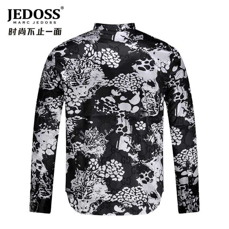 衬衫 JEDOSS 089 长袖 烫银暗纹丝质感黑修身 爵迪斯男装 春夏上新款