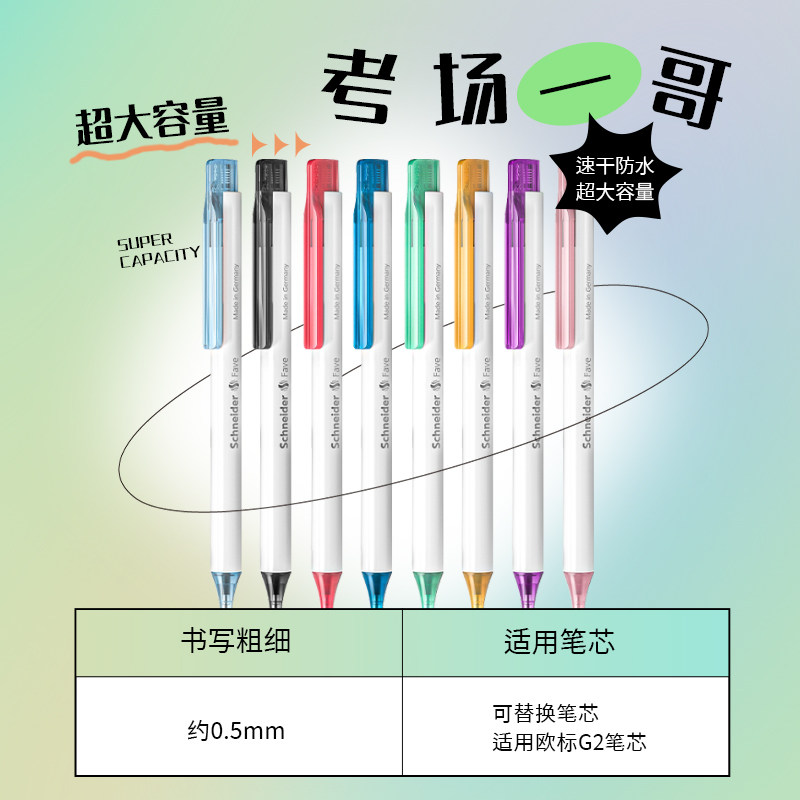 861 瑞克 803 水笔0.5mm 菲尔中性笔套装 学生书写考试办公大容量直液式 格伦 德国进口schneider施耐德星际