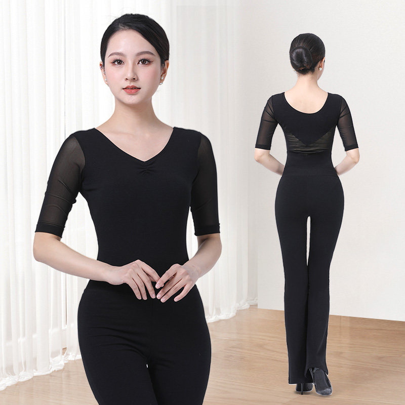 形体服女2025新款 上衣裤 子套装 黑色 高端舞蹈导师艺考模特走秀中袖