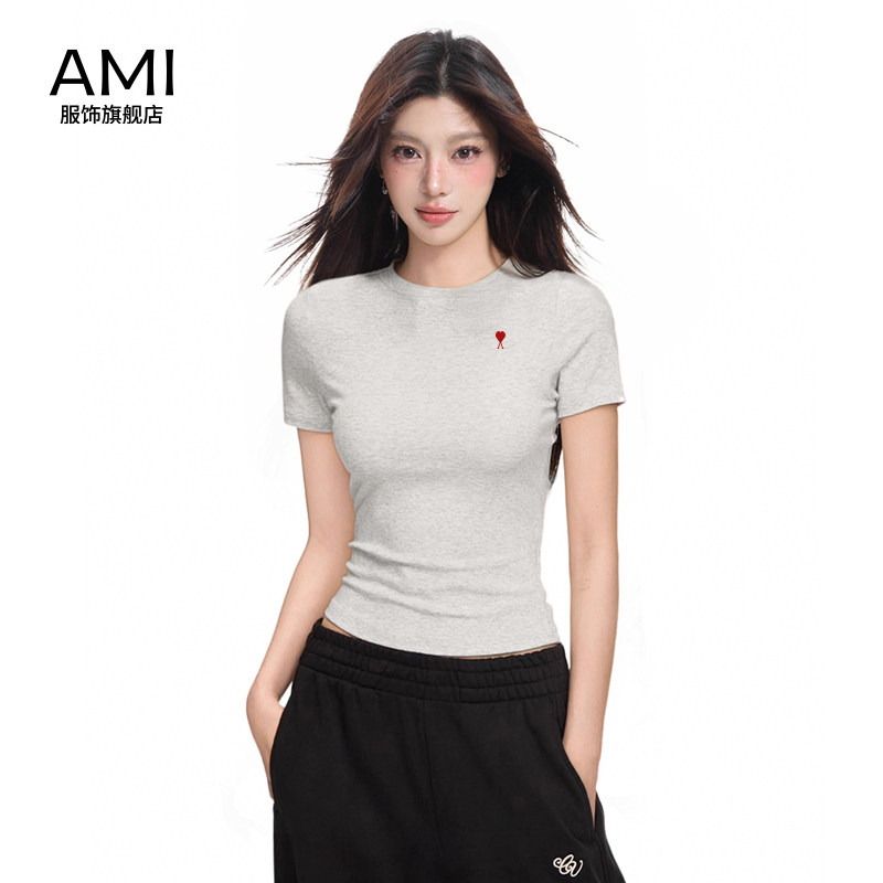 辣妹修身 AMI官方美式 显瘦收腰正品 2026新款 白色正肩短袖 t恤女夏季