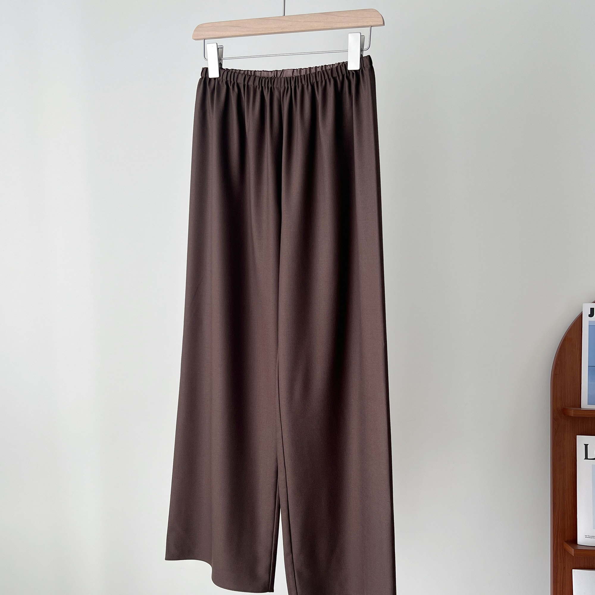 流畅有型 松紧腰精纺羊毛一片式 立裁无侧缝阔腿休闲裤 Row空气裤由