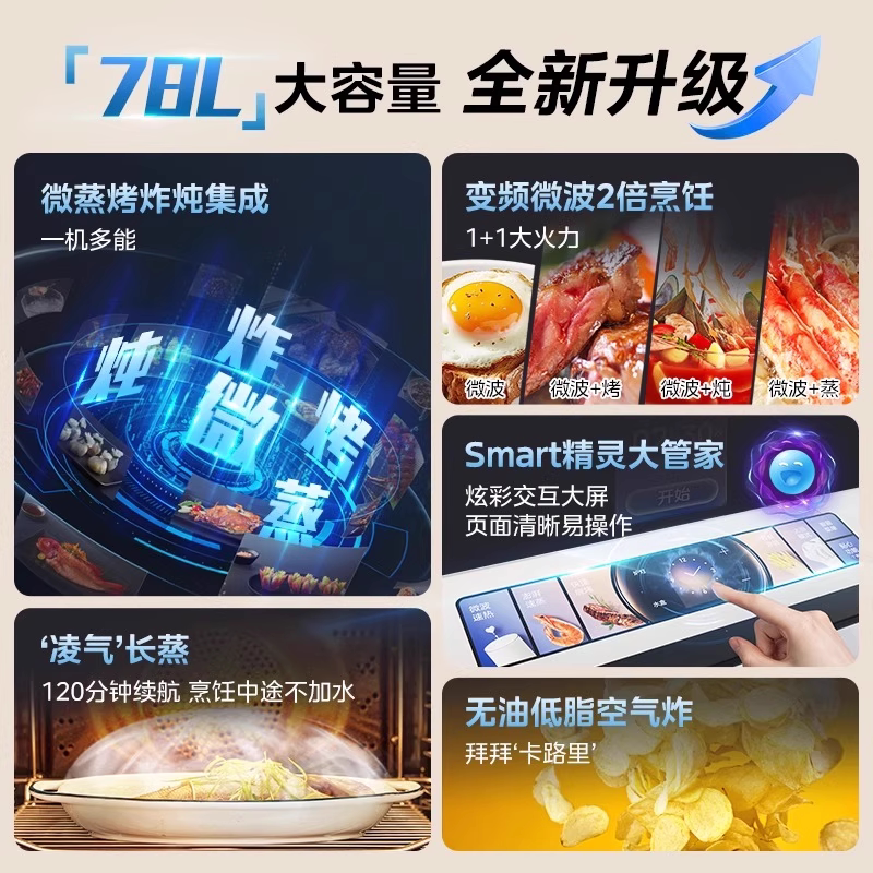 为您提供商品蒸烤一体机微波炉蒸烤箱家用78L容量 华凌神机微蒸烤T7G1嵌入式的详细介绍,