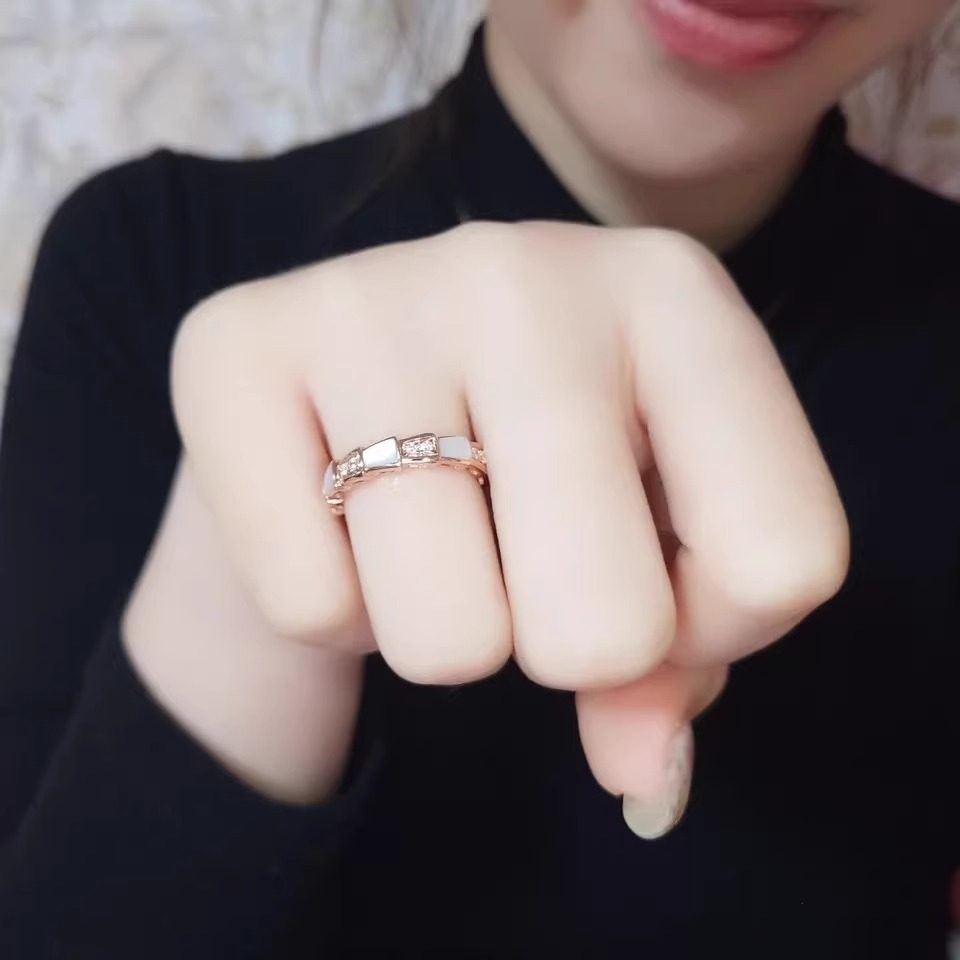 Cookie Kiss蛇形镶钻白贝壳戒指女18K金食指指环 设计师 英国由