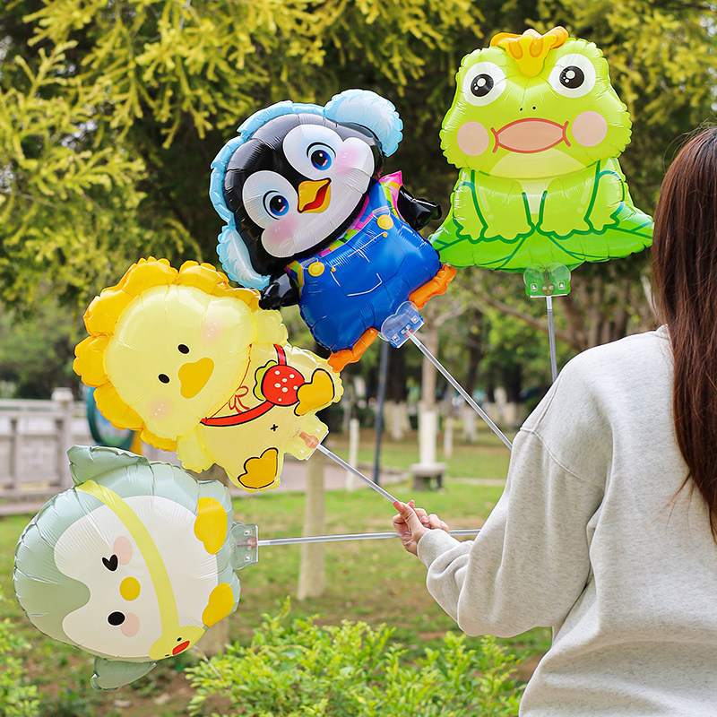 动物铝膜手持夹片气球带杆生日派对商场活动布置摆摊 儿童卡通Q版由
