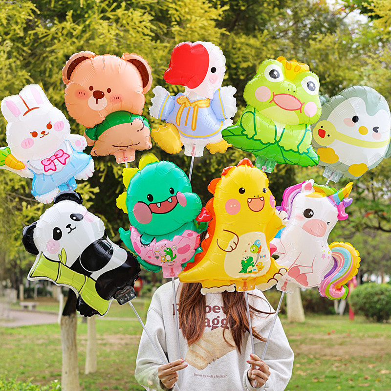 动物铝膜手持夹片气球带杆生日派对商场活动布置摆摊 儿童卡通Q版