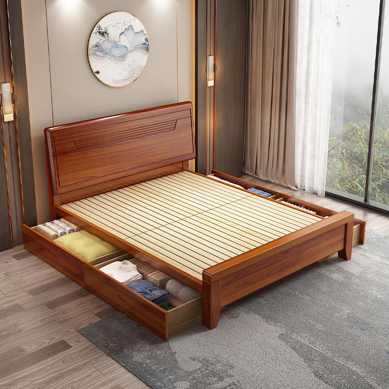 现代简约实木床1.8米主卧双人床1.5M单人经济型高箱储物大床