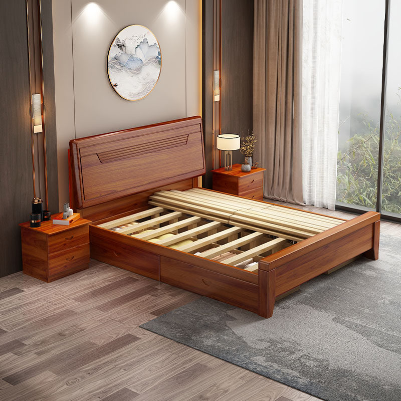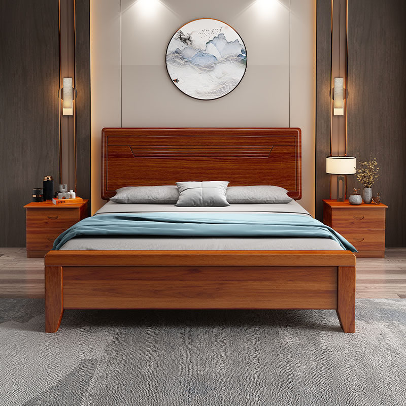 优质实木床双人床1.8米主卧简约1.5米单人床家用1.2m加厚床 新中式